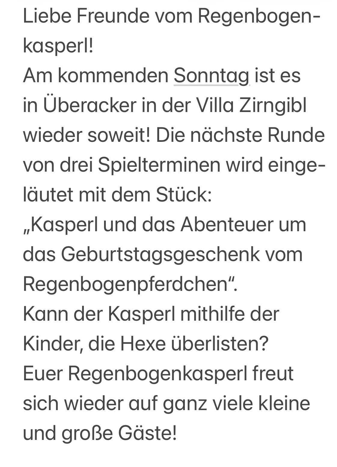 Und wieder beginnt eine neue Spielrunde mit dem Regenbogenkasperl…