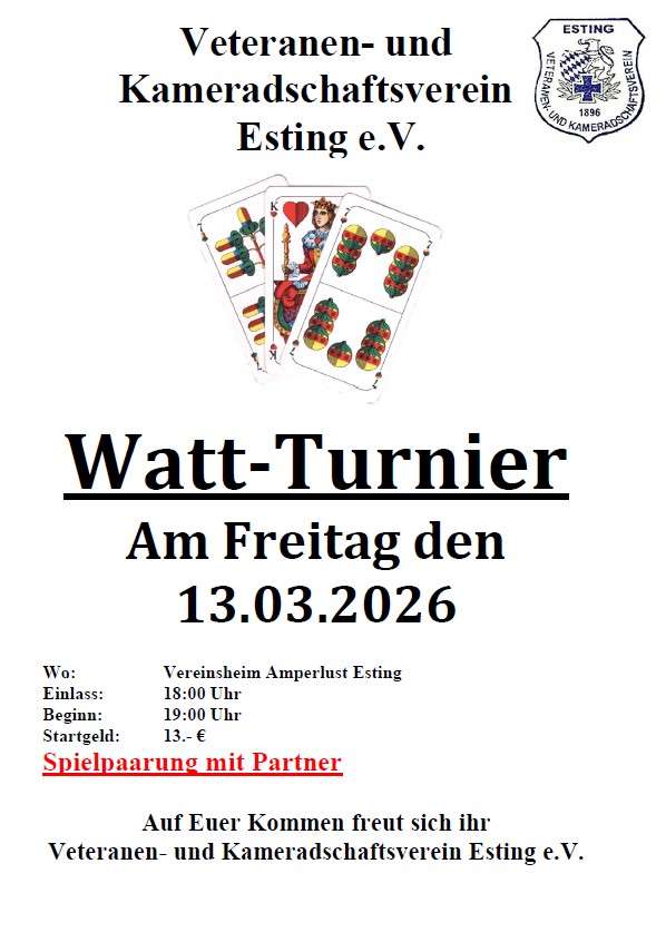 Der Veteranen- und Kameradschaftsverein Esting e.V. lädt zu seinem traditionellen Watt-Turnier ein.