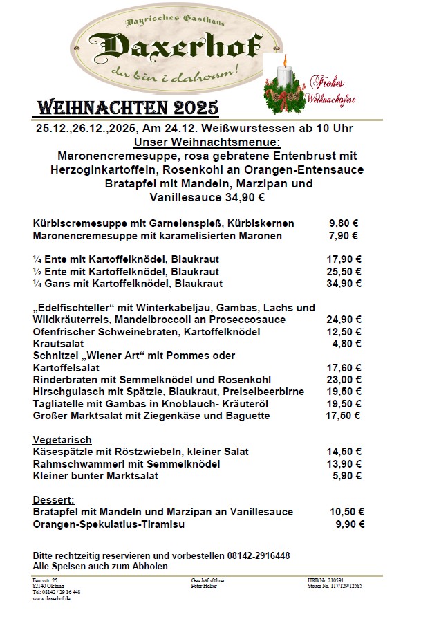 - Weihnachten 2025 im DAXERHOF – Bayerische Wirtshaus – da bin i dahoam !