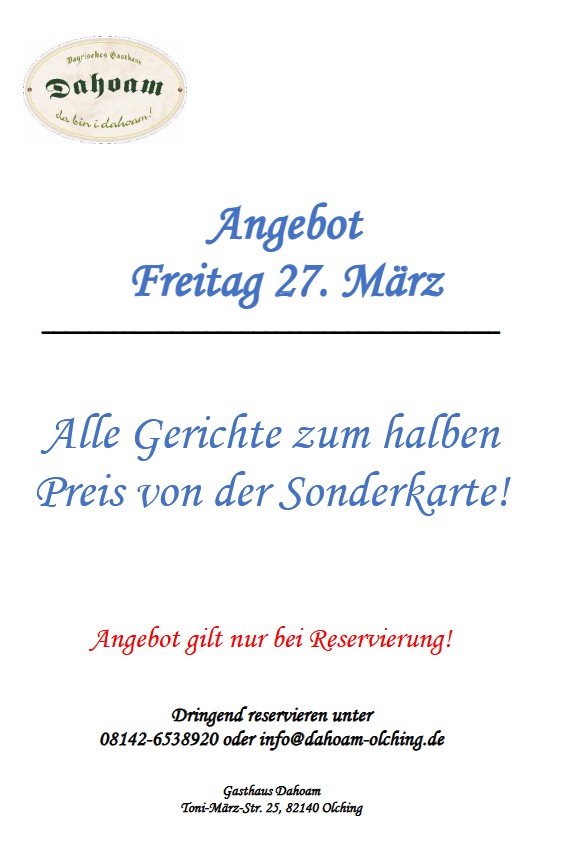 Wieder gibt es die Aktion „Gerichte zum halben Preis“ beim DAHOAM
