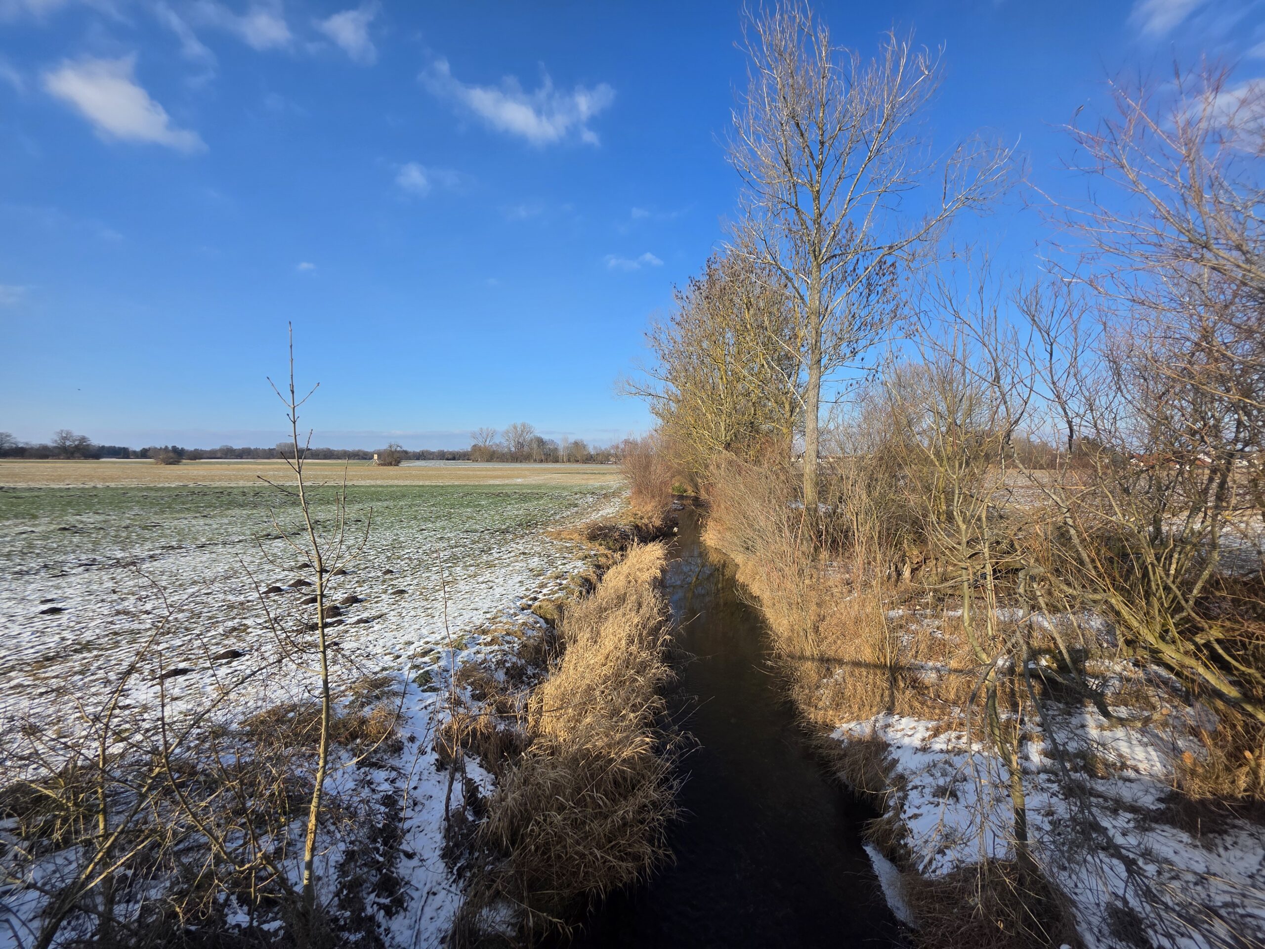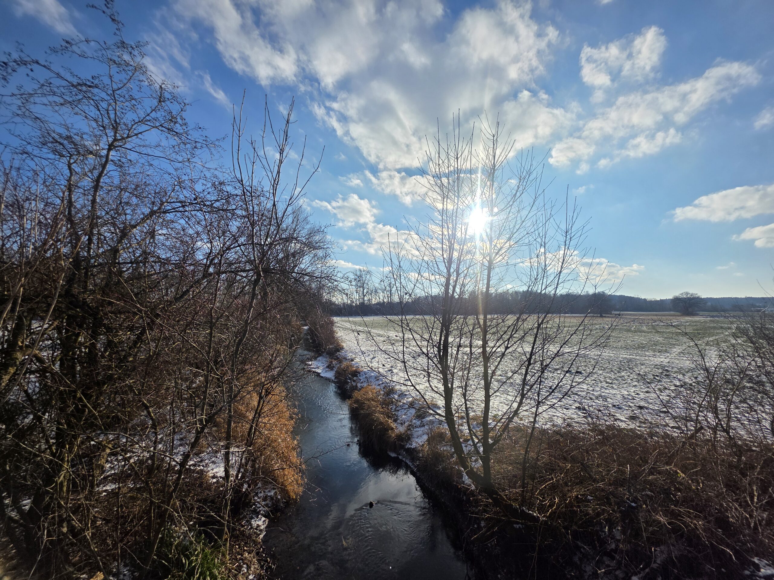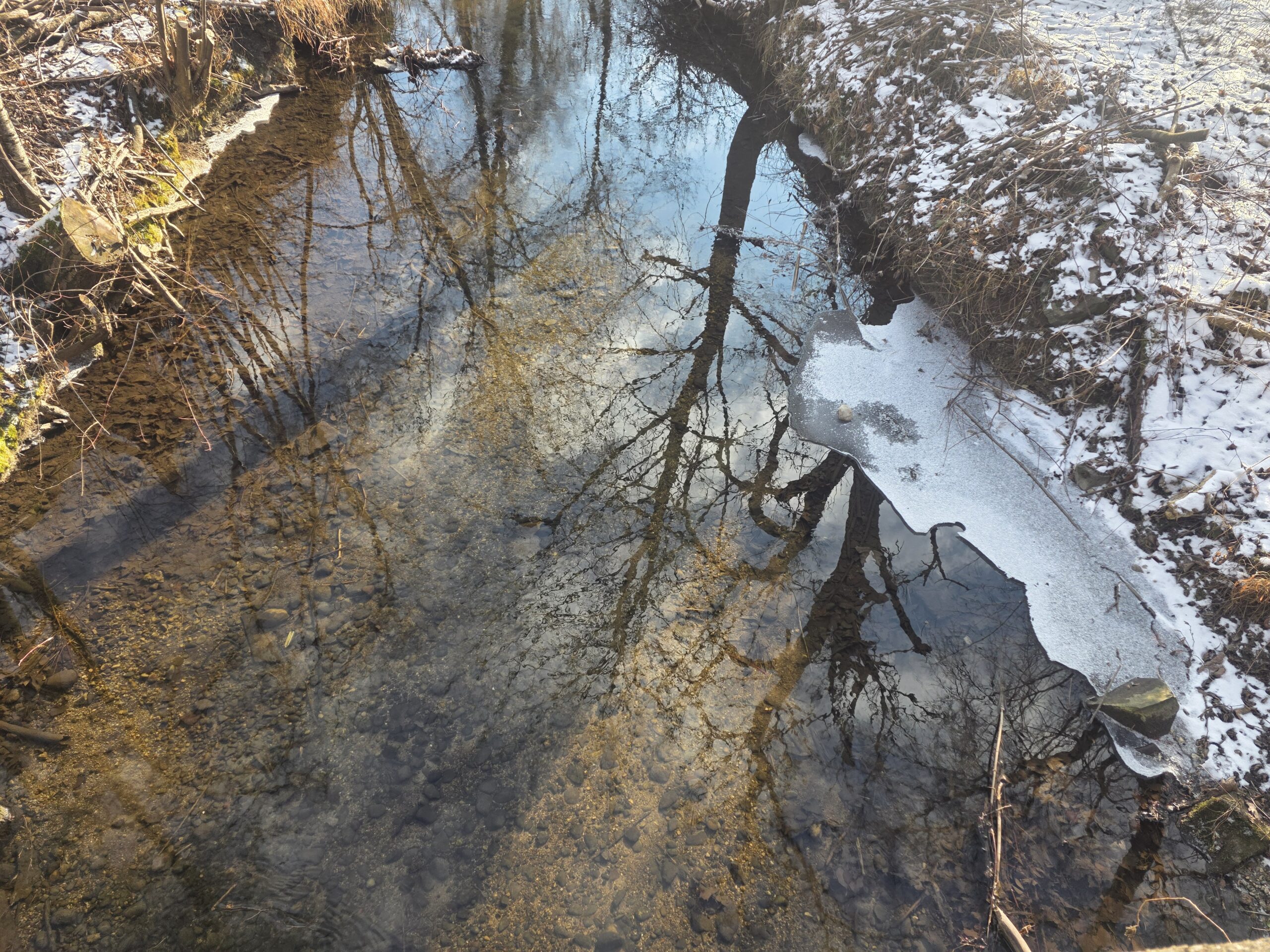 Sogar der Starzelbach zeigt eine kleine Eisschicht am ruhigen Uferbereich