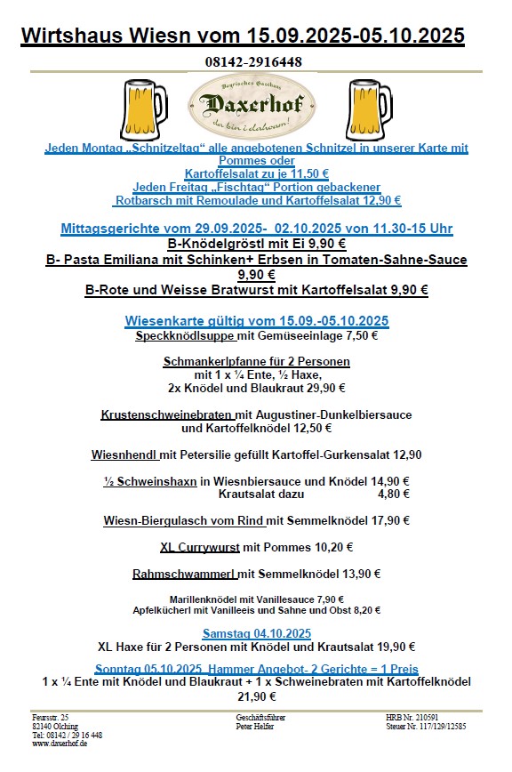 Wirtshaus Wiesen im Daxerhof mit der Wiesnkarte