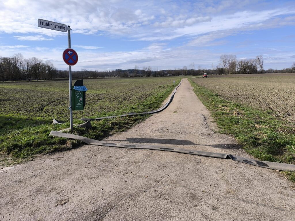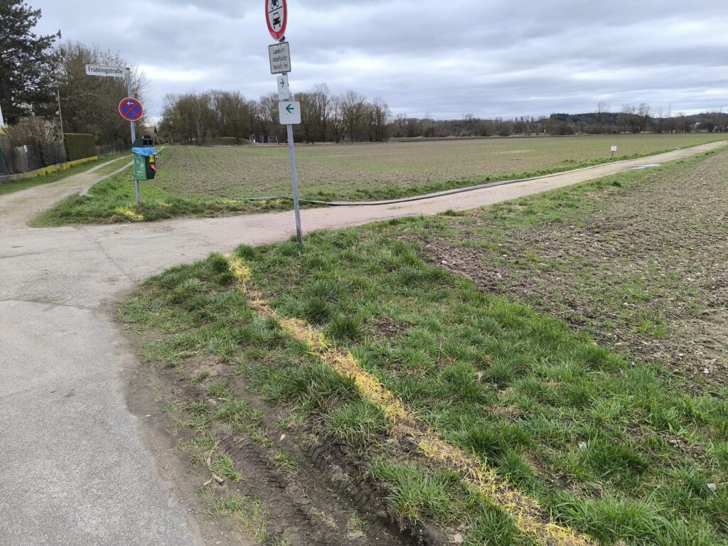 Leider die Feuerwehr die am 25. Februar eingesetzten hochleistungsfähigen langen Schlauchleitungen bis zum Starzelbach liegen gelassen, so dass die Bauern mit ihren schweren Traktoren bis heute drauf rumfahren. Am 14. März hat jetzt  jemand endlich den quer über die Straße liegenden Schlauch weggezogen, dass nicht mehr alle drüber fahren oder laufen mussten.